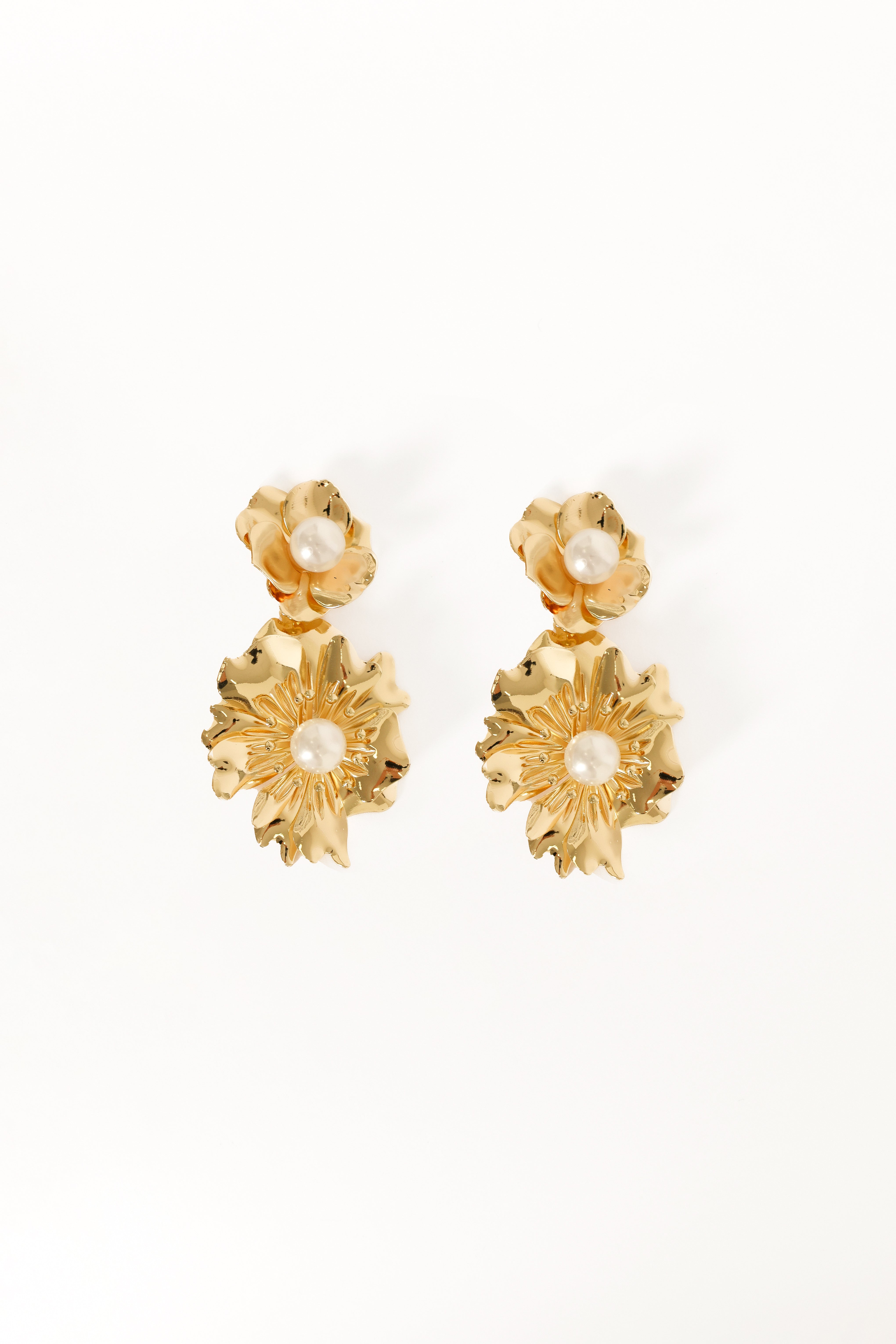 Lilou Flower Pearl Earrings - Gold