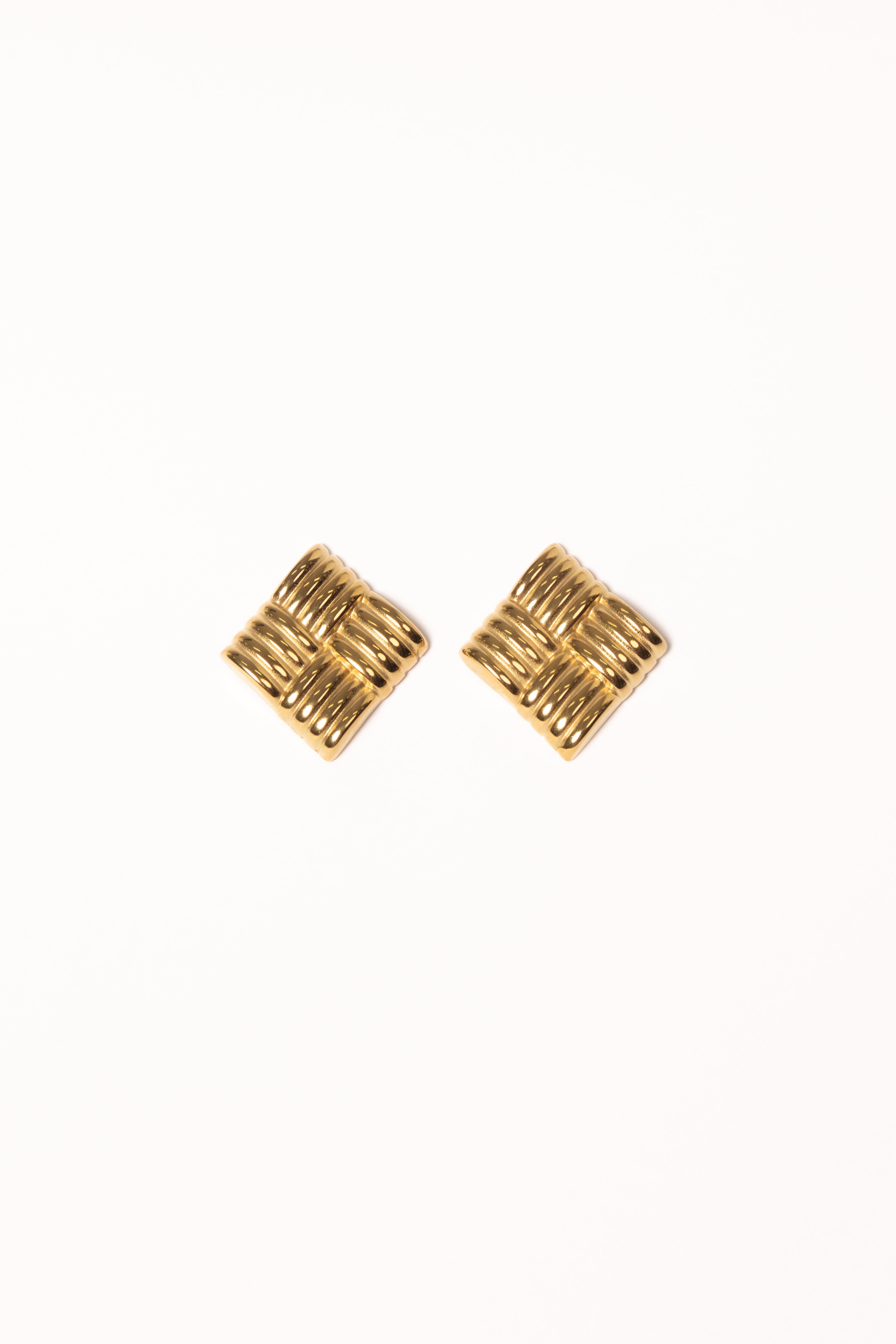 Elevate your everyday look with the effortlessly chic Rinna Earrings in Gold. Featuring a bold, large square design with an intricately woven texture, these earrings are a modern twist on a timeless statement piece.