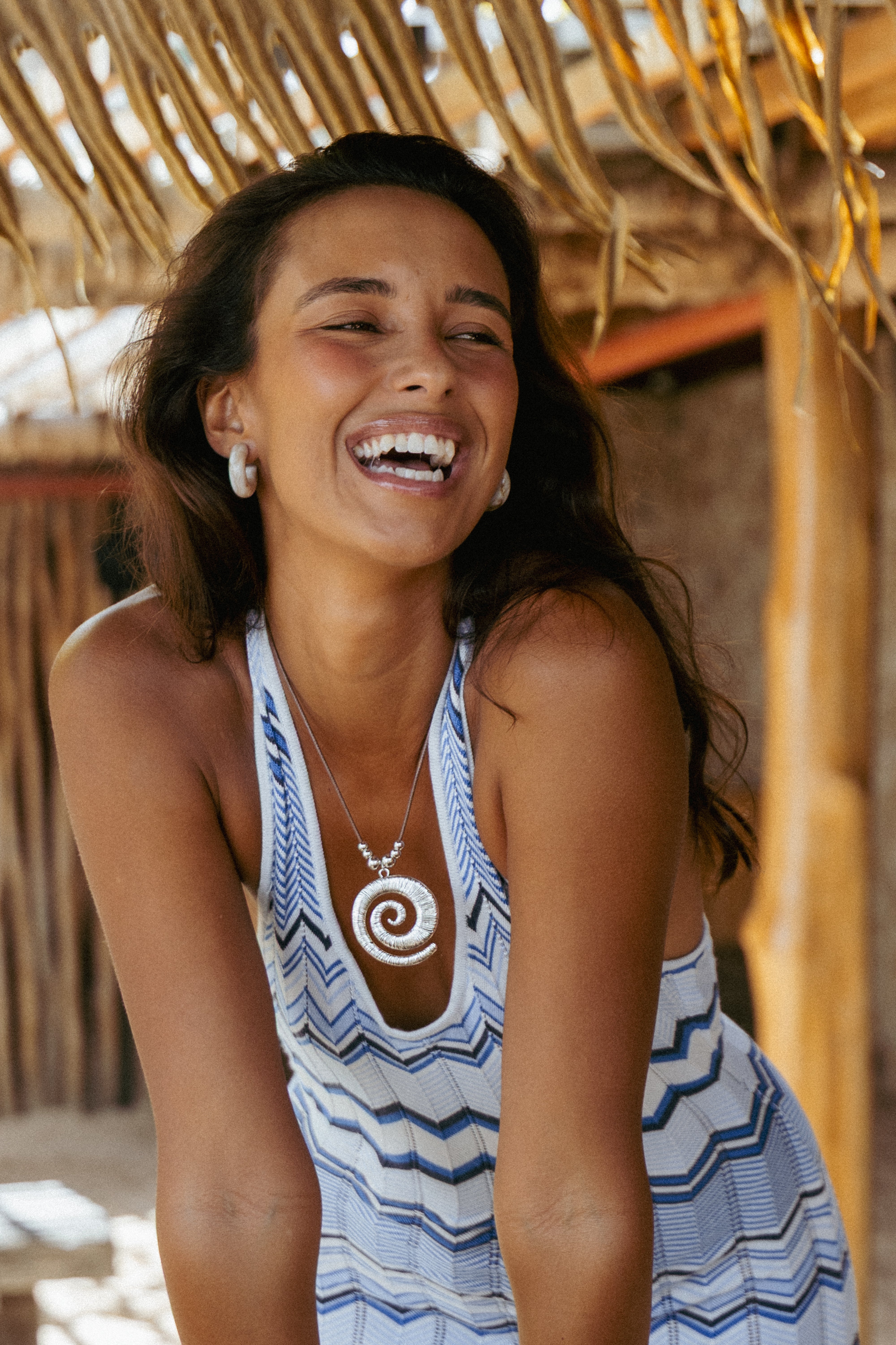 Add a touch of effortless elegance to your look with the Whisper Necklace in Silver. Featuring a bold, large silver spiral pendant on a chic brown cord chain, it strikes the perfect balance between modern artistry and timeless design.